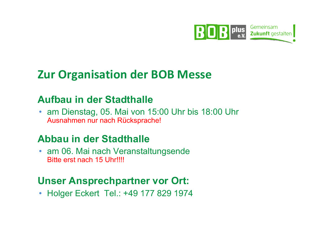 - Unternehmen, Behörden, Hochschulen und Berufskollegs laden uns zu BOB Touren ein und stellen sich und ihr Angebot vor. Begleitet werden die Touren i.d.R. von Bürgermeistern-innen und der Presse.