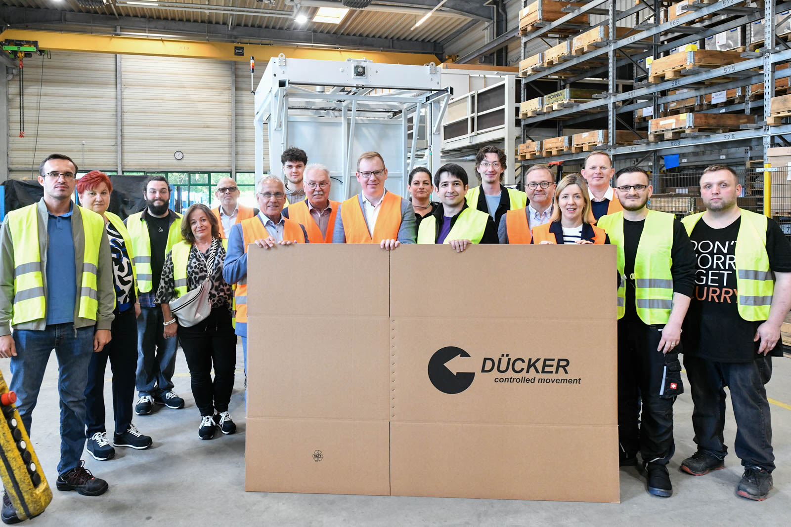 Im Vorfeld der diesjährigen Berufs-Orientierungs-Börse (BOB) in der Langenfelder Stadthalle ermöglichte das Unternehmen Dücker conveyor systems Hans-Dieter Clauser (BOB plus e. V.), Bürgermeister Frank Schneider sowie Thomas Zacharias, Claudia Abendroth und Holger Eckert von der Wirtschaftsförderung Langenfeld einen exklusiven Einblick in ihre Produktionshallen an der Ernst-Tellering-Straße. Das Unternehmen ist Experte für den automatisierten Transport von schweren Produkten und entwickelt dafür computergesteuerte Fördersysteme.