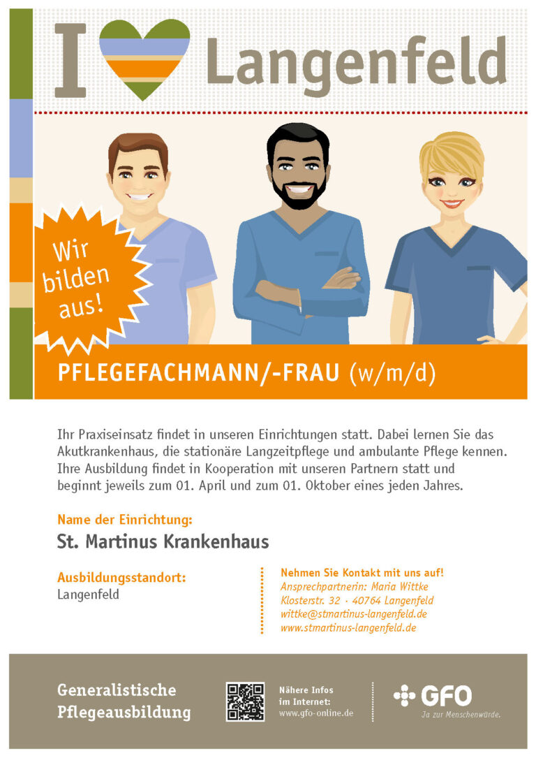 - Karrierechancen: Ein erfolgreicher Abschluss ermöglicht dir den Eintritt in die dreijährige Ausbildung zur Pflegefachfrau / zum Pflegefachmann (m/w/d) oder zur operationstechnischen bzw. zur anästhesietechnischen Assistenz (m/w/d), wenn du mindestens einen Hauptschulabschluss der Klasse 9 vorweisen kannst.